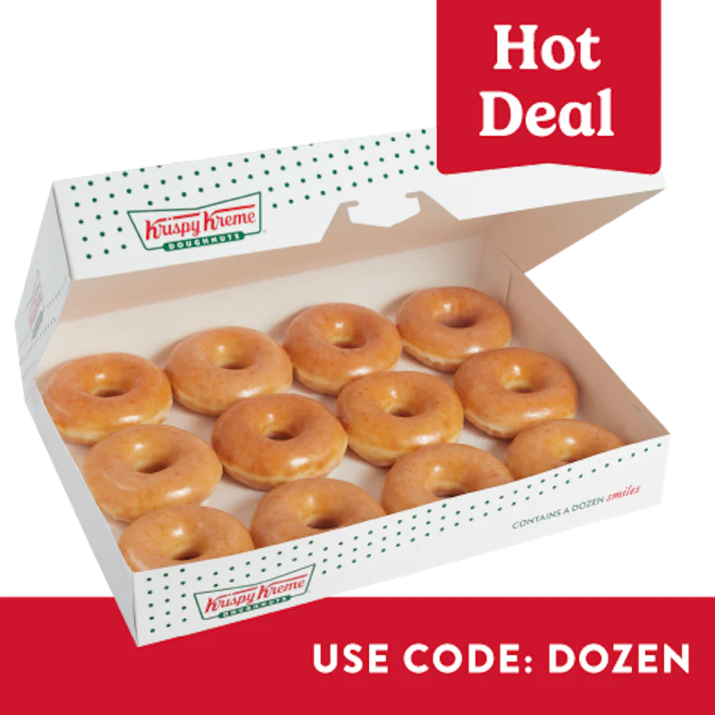 Get one Original Glazed® Dozen for just $9.99 when you purchase any regular priced dozen or 16 Ct. Minis. To redeem, add this item to your cart along with any other dozen or 16 Ct. Minis then apply promo code: DOZENS at checkout. Limit 1 redemption per guest.